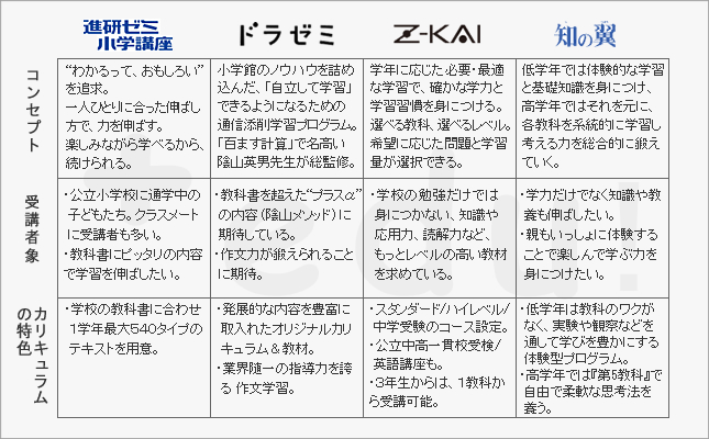それぞれの通信講座には選ばれる理由があります。各講座の特長を知って、お子さんの学習目的に合った教材を見つけてください。